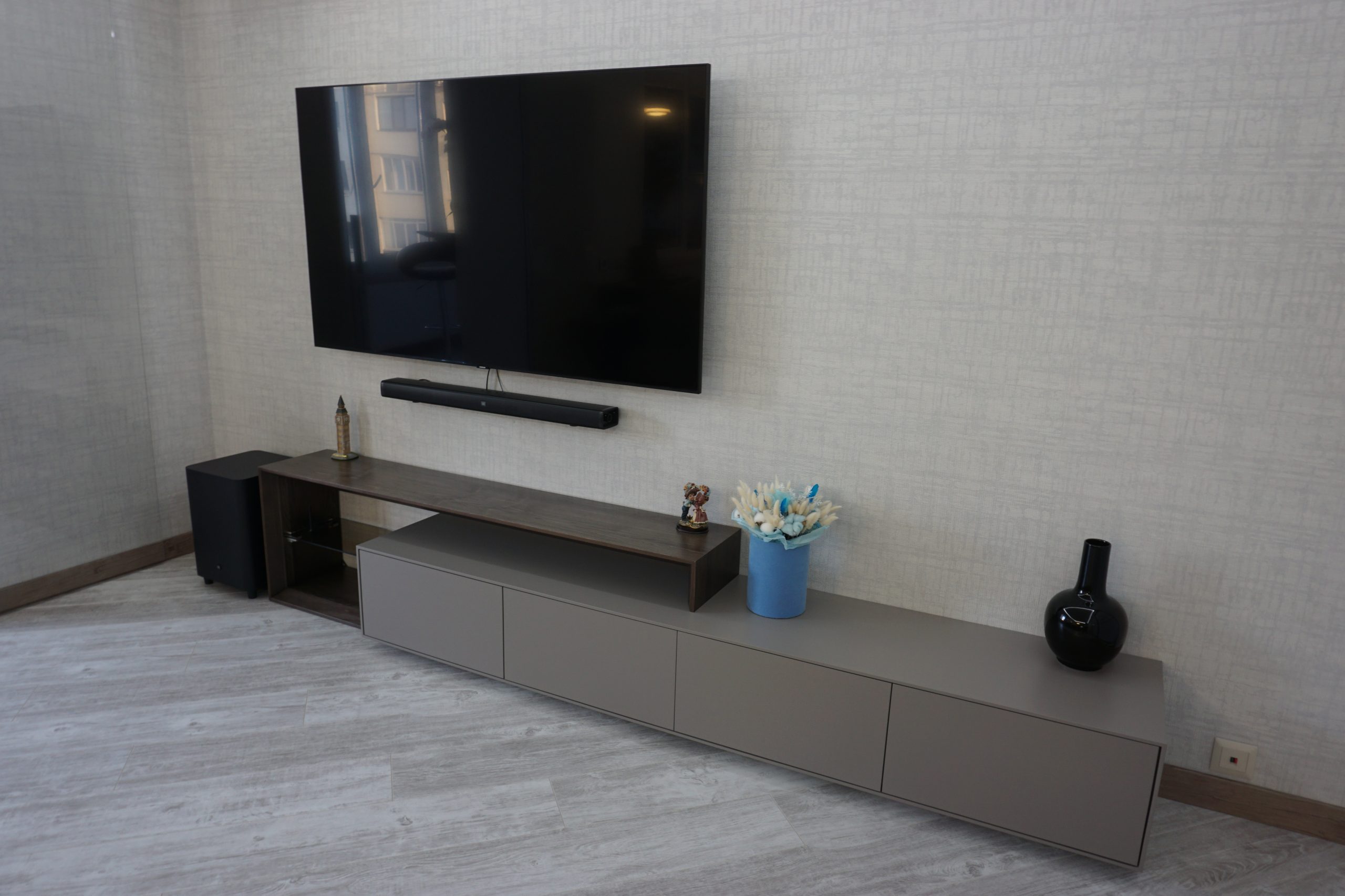 “Chicos, ¡muchas gracias por su trabajo! La zona de TV quedó elegante, sencilla y exactamente como queríamos. Todas las tomas para los cables están bien ubicadas, ¡gracias por la recomendación! Los amortiguadores son tan suaves y silenciosos. ¡Estamos muy contentos! ¡Esperamos nuestra cocina!”
