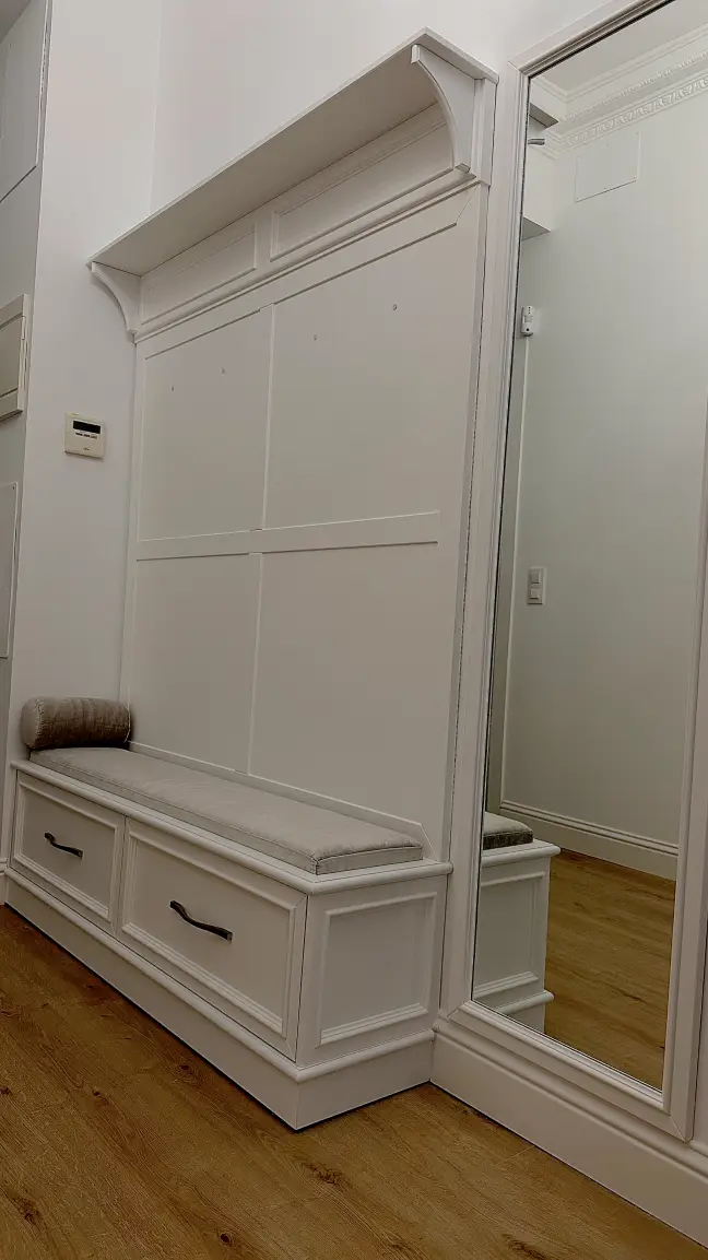 “¡Buenos días! Hoy vinieron a revisar los trabajos pendientes en el apartamento, pronto nos mudamos. Quería decir que ¡la mesa es simplemente impresionante! No dejo de mirarla 😍 Ya me imagino cómo nos sentaremos en ella. Las puertas también son geniales. ¡Quedan perfectas y sin ningún tipo de deformación!”