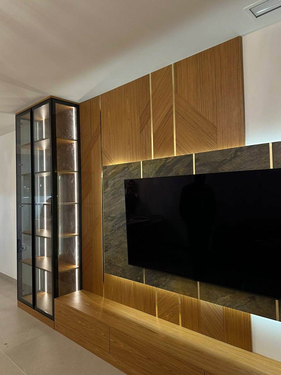 “Guys, thank you so much for your work! The TV area turned out stylish, sleek, and exactly how we wanted it. All the cable outlets are conveniently placed, thank you for the suggestion! The soft-close mechanisms are so smooth and silent. We are very happy! Looking forward to our kitchen!”